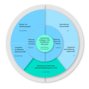 Umgesetzt wird dies durch die Entwicklung einer prototypischen Software für den Austausch von intelligent aufbereiteten und synthetisierten Daten in Innovationsprojekten, welche die Systeme der beteiligten KMU integriert und synchronisiert. Diese Technologie ermöglicht einen multilateralen Datenaustausch in Innovationsprojekten und wird verknüpft mit humanzentrierten Arbeitskonzepten für die Innovationsarbeit in nationalen und europäischen Netzwerken.